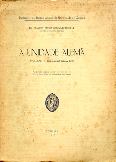 Mas foi em 3 de Março de 1939, na respeitável Sala dos Capelos da Universidade de Coimbra, que se proporcionaria a oportunidade de, alargando o campo, teorizar sobre «A Unidade Alemã, evolução e realização duma ideia», na honrosa presença do Reitor, do Director da Faculdade de Letras, Eugénio de Castro, e de um significativo corpo de Doutores.
